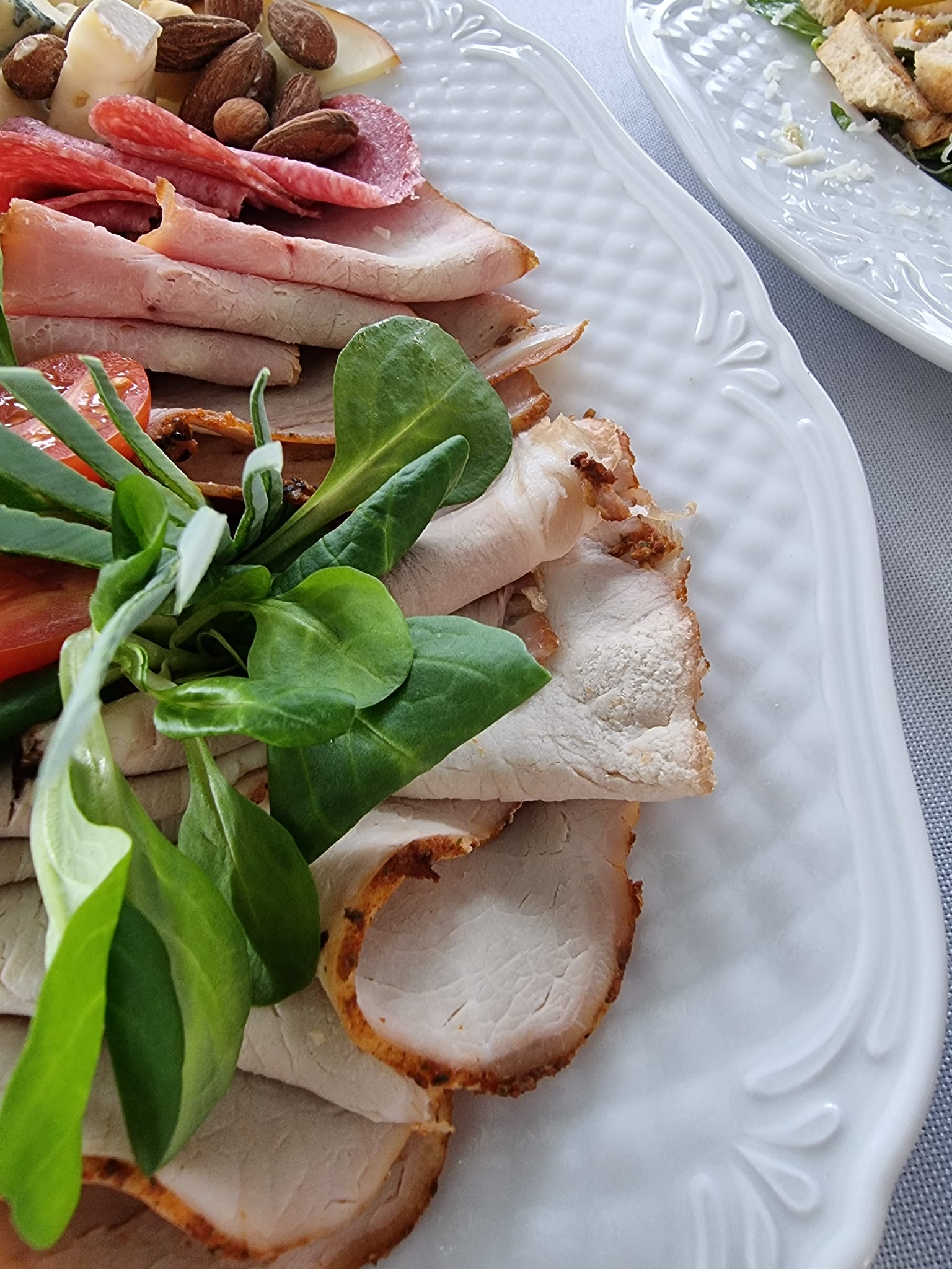 deska wędlin i mięs pieczystych : schab, karkówka, boczek i pasztet wieprzowy